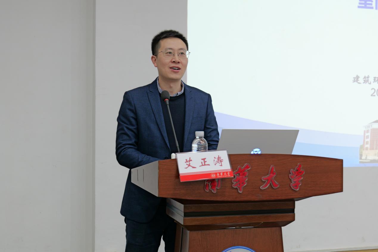 报告会上,艾正涛教授从室内人因环境的概念引入,深入阐述了室内光环境、声环境、热湿环境、气味环境以及空间布局对人员健康、舒适和工效的影响,详细分析了室内空气化学污染、颗粒物污染和微生物污染的来源与危害,并从建筑技术、人因、环境健康、职业卫生、心理学、流行病学、材料科学和计算机科学等多个学科角度,探讨了室内环境因素对人体健康的影响机制和防控策略。通过分享口腔诊疗医护需求、地下工程长期驻留人员身心健康和洁净厂房的长期个人防护等具体案例和前沿研究成果,艾正涛教授向大家展示了室内环境技术在改善人居环境、促进身心健康方面的巨大潜力。“人因环境不仅关乎人的居住条件,更关乎国家战略需求。”艾正涛教授指出,“健康中国”提出2030年健康产业产值达到16万亿,室内人因环境将在其中占据重要地位,这需要我们跨学科合作,克服专业束缚、主动学习、协调矛盾,共同推动室内环境健康领域的发展。